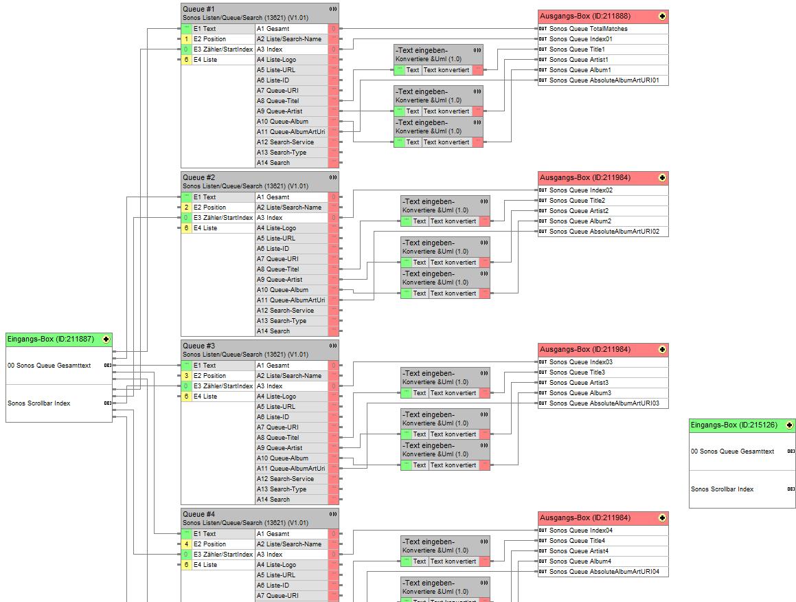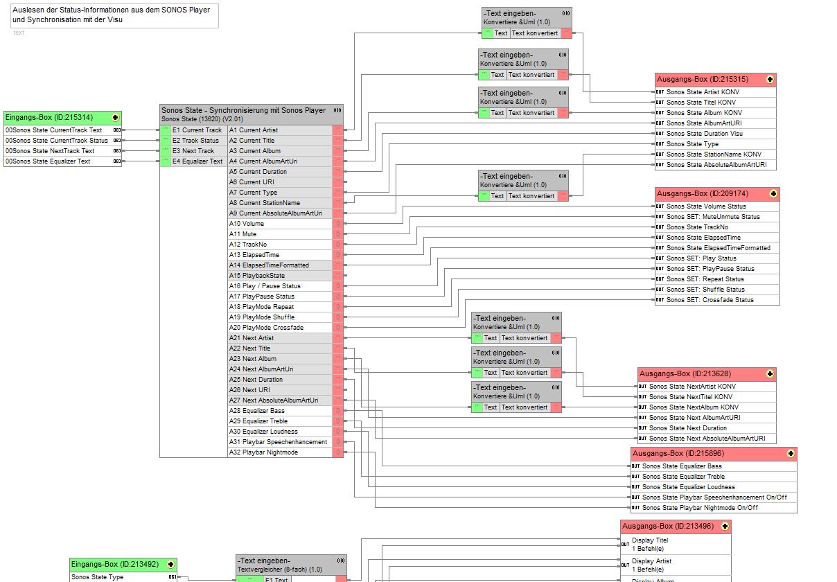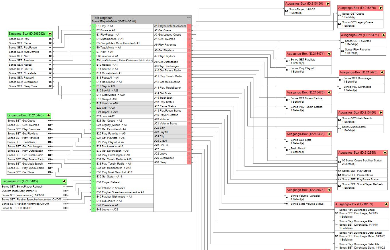 Der Baustein realisiert die gesamten Befehle, die an den Sonos Controller über die API gesandt werden.
