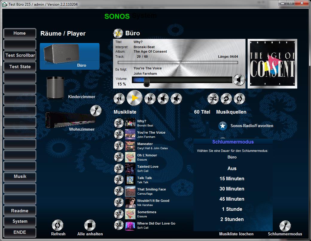 Ähnlich wie im Sonos Controller wurde die Sleep-Funktion umgesetzt. Da wir die Funktion nicht sehr häufig nutzen, habe ich aktuell noch keine Status-Anzeige realisiert, wenn der Sleep-Modus eingeschaltet ist.